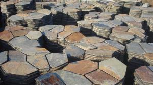 Rusty slate flag stone on mesh